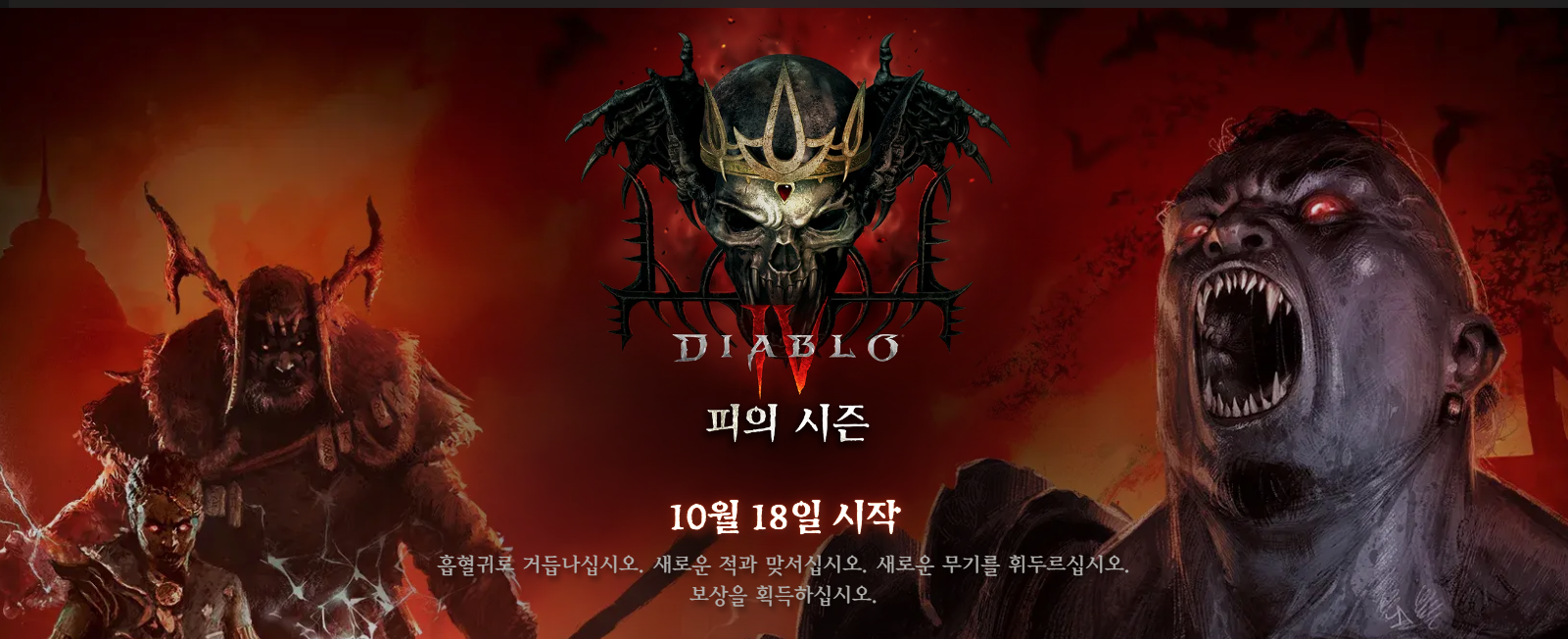 디아블로4 시즌2 : 피의 시즌이 한국시간 10월 18일 시작됩니다. 디아블로4 시즌2 시즌 특징 디아블로4 시즌 특징 이 외에 엄청난 양의 업데이트가 있으므로 시즌1과는 많이 달라진 시즌이 될 거 같습니다. 업데이트 내용확인은 https://news.blizzard.com/en-us/diablo4/23964909/diablo-iv-patch-notes 에서 가능합니다. 추후에 한글로 업데이트되는 대로 올리겠습니다 감사합니다.