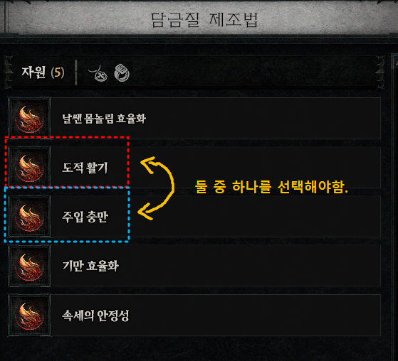 [디아블로4 시즌4] 독 주입 꿰뚫는 사격 빌드 (연계 점수 버그 활용!) https://youtu.be/dpzUe2OU8WY?si=V-ByKcCkMZjeFgm4 안녕하세요. 룸머킴입니다. 앞서 냉기 주입 꿰뚫는 사격 빌드로(https://roomerkim.tistory.com/142) 플레이하던 중, 평타 1방만으로 연계점수를 3개 한번에 쌓을 수 있는 버그를 알게되어 이를 활용한 빌드를 제작해보았습니다. ※도적 구멍 뚫기 버그에 대한 자세한 내용은 아래 따로 정리하였습니다. https://roomerkim.tistory.com/143 구멍 뚫기 한방에 연계 점수를 3점 바로 쌓을 수 있으므로, [평타1회 → 꿰사1회]를 빠르게 연타하는 형태로 진행되는데요. 비단 꿰사 외에 다른 핵심 기술에도 똑같이 적용할 수 있습니다. 하지만, 구멍 뚫기 버그를 활용하기 위해서는 [도적 활기] 담금질을 2개 사용해야하는 만큼, 일반적으로 냉기 주입 연발 빌드 처럼 담금질을 통해 아이템에 [주입 충만]을 2개 붙여줘야하는 빌드와는 다른 관점에서 접근할 필요가 있었습니다. 그래서 [꿰뚫는 사격] 스킬의 특징인 높은 행운의 적중 확률을 활용하기 위해, 행운의 적중 확률에 의해 스킬 쿨 타임이 줄어드는 [독 주입]을 선택하여 활용하는 빌드를 생각해보게된 것 입니다. 스킬 구성 [꿰뚫는 사격] 스킬 특성상 연계 점수를 쌓으면 행운의 적중 확률이 올라가므로, [꿰뚫는 사격]을 제대로 활용하기 위해서는 [행운의 적중]과 관련된 옵션 혹은 스킬을 많이 챙길 수 밖에 없습니다. 그런 의미에서 주입 스킬 중 [독 주입]을 선택하여, 자체적으로 독 주입 스킬 쿨 타임을 줄이고, 이로 인해 아이템상에서 여유가 생기는 담금질 옵션을 [도적 활기 : 구멍 뚫기 자원 생성량 증가] 2개로 채워 “구멍 뚫기 버그”를 적극적으로 활용할 수 있도록 스킬을 구성합니다. 위상 및 아이템 구성 위상 구성에서 특이한 점은 방어구인 [투구, 가슴, 바지, 장화]에 적용한 [방어]와 관련된 위상은 [어스름한 위상] 단 하나이며, 그 외에는 모두 [보조] 위상이라는 것 입니다. 여기에 공격 위상이긴 하지만 [응보의 위상]까지 더해지게 되는데요. 위 5가지 위상을 보면 짐작하셨겠지만, [꿰뚫는 사격]이 갖는 높은 행운의 적중 확률을 바탕으로 전적으로 [상태 이상]을 통해 생존을 도모하고, 대미지 또한 [상태 이상]을 유발할 수 록 강해지도록 위상을 구성한 것을 알 수 있습니다. ★[유독한 얼음의 위상]을 목걸이에 착용하는게 딜 기대값이 더 높습니다. ★추가로 보스 몹은 각각의 상태이상에 걸리지는 않지만, 그로기 상태에 빠지면, 모든 상태이상에 걸린 것으로 취급받기 때문에 보스몹을 빠르게 그로기상태로 만들 수 있다면, 높은 대미지를 기대할 수 있습니다. 담금질 옵션 구성 기본적으로 확률적으로 꿰뚫는 사격을 2번 발사하는 옵션을 무기에 붙이며, 특이한 점은 방어구에는 행운의 적중 확률에 따른 각종 상태이상을 유발하는 옵션을 *종류별로(오한, 감속, 기절, 빙결, 멍해짐, 이동불가) 모두 붙인다는 것 입니다. 여기에 더하여, 구멍 뚫기 버그를 사용하기 위해 [도적 활기 : 구멍 뚫기 자원 생성량 증가] 옵션을 2개 붙여주어야합니다. 다양한 상태이상이 높은 행운의 적중과 빠른 공속으로 인해 동시 다발적으로 발생합니다. 이로 인해 1. 다수의 일반 몹을 상대할 때 생존률을 높여줍니다. 2. 보스몹을 아주 빠르게 그로기 시킬 수 있습니다. (보스몹의 그로기 상태는 모든 상태이상에 걸린 것으로 판정됨) 정복자 구성 정복자 구성은 기본적으로 희생 패시브 대미지를 높이기 위해, 취약 대미지 증가와 상태이상 시 대미지 증가를 챙기는 방향으로 구성됩니다. 특이사항으로 쇠못덫 스킬은 자체적으로 지속적인 오한 효과를 주며, 정복자에서 덫 영향을 받는 대상에 대한 피해증가 효과가 희생 패시브로 인한 증댐에도 영향을 주기 때문에 덫과 관련한 정복자를 챙기는 편입니다. 1. 시작 노드 2. 약점 노출 3. 목격자 제거 4. 영업 비밀 5. 치명적인 매복 6. 소름돋는 전리품 7. 비열한 습격 대미지 매커니즘 정리 앞서 공략한 냉기 주입보다는 단순한 딜링 사이클을 가지고 있습니다. 오히려 중요한 점은 가능한 빠르게 [구멍 뚫기]와 [꿰뚫는 사격]을 번갈아가면서 사용하는 것이며, 중간 중간 바닥에 덫과 연막탄을 끊임없이 사용해야합니다. 생각보다 손가락 피로도가 높은 빌드이며, 플레이하는 게이머가 얼마나 빠르게 클릭하느냐가 굉장히 딜량에 크게 영향을 미치는 빌드라고 볼 수 있겠습니다. ^^ ” [구멍 뚫기 1회] → [꿰뚫는 사격 1회] ” 반복[연막탄]과 [쇠못 덫]으로 인한 딜 상승량이 굉장히 높으므로 중간 중간 적절히 활용하는게 관건 입니다. ★특히 우두머리가 그로기 상태일 때! 꼭 [쇠못 덫]과 [독 주입]을 사용 후 딜링하는 것이 중요합니다.