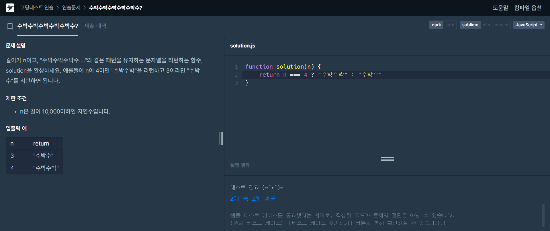 // 근데 반복되는 문자열을 리턴하라는 게 3이면 “수박수”이고, 33이면 “수박수박수박”인가?